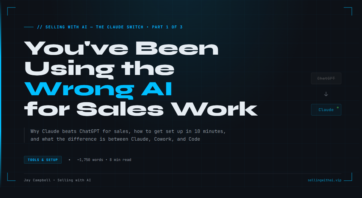 If you're using AI seriously for sales work, including prospecting, call prep, deal coaching, and writing, ChatGPT is not the best tool. Claude is. And most people don't know it exists, or don't know how to use it properly.
